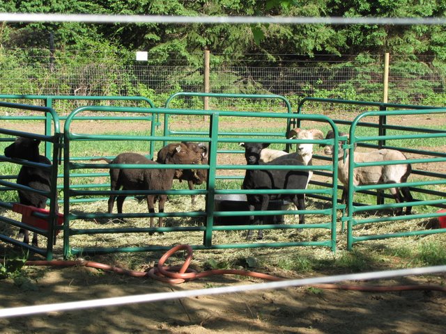 We finally have sheep in Lincoln, Massachusetts! Six 50:50 Ouessant/Shetland rams and wethers arrived Monday evening, May 3, 2010 after stopping over for the weekend at the Maryland Sheep and Wool Festival on their way from Oregon.
