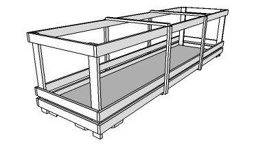 The design follows a sketch that Bruce suggested last winter after he sheared Betty’s sheep. Ray adapted the design to the material on hand — a couple of 4×8 sheets of 3/4 plywood. The new sheep prompted an addition modification because they promptly squeezed through the openings and started walking on the hay. Lowering the top rails thwarted that activity and prompted another — the jumped over the top rail. Adding a couple of sticks from the summer’s tomato patch to the top fixed that.